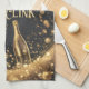 Pop Fizz Clink Midnight Gold Champagne Bubbles Tea Towel