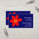 A business/ profile card template with a simple bold stylised flower motif. Main contact details laid out on the front with email and web site information on the back.