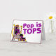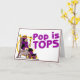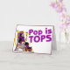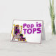Father is sitting on a thrown and wearing a crown. Father's day card. Pop is tops.