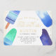 Adorable party invitations for your little one's summer birthday party feature four watercolor popsicle illustrations in vibrant shades of blue and green, with "pop on over and chill with us" in whimsical script lettering. Personalise with your birthday party details beneath. Gold foil lettering and accents make this cute summer design extra special!