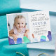Adorable party invitations for your little one's summer birthday party feature four watercolor popsicle illustrations in vibrant shades of blue and green, with "pop on over and chill with us" in whimsical script lettering. Personalise with your birthday party details beneath, and add a photo for a sweet finishing touch.