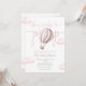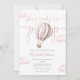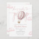 This charming baby shower invitation features a cute pink hot air balloon and clouds, along with elegant script typography. With your registry QR code and event details on the reverse. Designed by Thisisnotme©