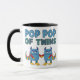 Pop Pop of Twins mugs and travel mugs featuring two whimsical monsters. A makes you smile kind of mug for all the proud grandfathers of twin boys.