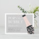 Pop the champagne! Cute birthday party invitations for milestone birthdays, 21st birthday party or any birthday celebration feature a pink and black bottle of champagne with the words "pop the bubbly" in chic white lettering. Personalise with your party details beneath.