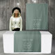 A custom sage green printed tapestry that can be customise to a table runner for your pop up shop. Customise the sage green table runner with your business logo and text and create your own table runner for your craft shows and vendor events. Perfect for trade shows, pop up shops, expos etc.