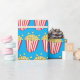 Perfect for popcorn lovers and movie goers, this colourful wrapping paper features a pattern of popcorn buckets.