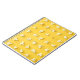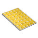 This design features popped popcorn kernels arranged in a neat grid on a yellow background. One kernel is only half popped.