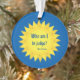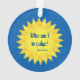 A double-sided ornament which displays a quotation from Pope Francis within a yellow sun on a blue background. The colours are a part of the Pontiff's Coat of Arms. The text reads: Who am I to judge? It demonstrates the greatness and humility of this very special man.