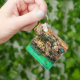 The key chain is made of metal and really sturdy. The flower design is really cheerful. The logo and colors are clear and crisp!