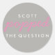 Popped the Question Popcorn Welcome Bag Sticker in Pink, White and Grey. Adhere this sticker to a bag of freshly popped popcorn!