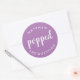 The sticker is made on wonderful paper and had no problem sticking to the bag that I purchased to put it on. I wanted to find a design that would be cute for the bride and groom and this one fit the bill as it has cute "bees" buzzing around and the wedding was taking place in a town called "Bee Cave". The packaging was great and protected the stickers. The website is easy to navigate and there are so many color choices. I had no problem finding a color that the bride was using on everything else selected. The design was adorable and there were many to choose from. You can make the figure as larger or smaller and you can place the photo and writting whereever you want to in the sticker. The printing is fabulous..better than expected.