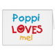 Poppi Loves Me T-shirts, cards, stickers, bodysuits bags, and more with colourful red, yellow, and blue text and heart design. These Poppi Loves me apparel and gift items will make poppi smile!