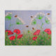 Acrylic and mixed media painting with bright red poppies and fat bumblebees