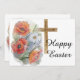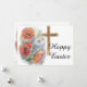 A lovely watercolour floral bouquet with red poppies and white daisies . A cristian cross wishes a happy Easter.