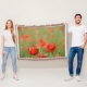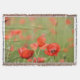 Throw blanket with vibrant red poppy flowers in a green field full of poppies. It has a strong emotion of hapiness, spring and summer. Great decoration on your sofa!