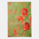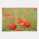 Kitchen towel with vibrant red poppy flowers in a green field full of poppies. It has a strong emotion of hapiness, spring and summer.