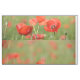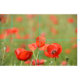 Fabric with print of vibrant red poppy flowers in a green field full of poppies. It has a strong emotion of hapiness, spring and summer.