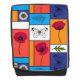 Colourful boxes and hand drawn poppies, daisy and butterfly, seamless vector pattern