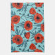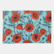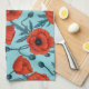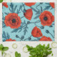 Poppies, red and blue on pool blue tea towel