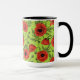 Poppies, red and green on lime green mug
