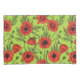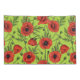 Poppies, red and green on lime green pillowcase