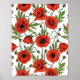 Red poppies seamless pattern, hand-painted with alcohol markers