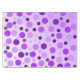 Pictured on a purple gradient are different shades and sizes of purple polka dots
