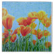 Poppy Ceramic Tile, watercolor pointillism painting on aquabord