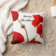 Poppy Flowers Red Floral Merry Christmas White Cushion