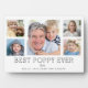 Simple and clean design lets your family photos shine on this Best Poppy Ever plaque. A large photograph in the centre with two smaller photos on either side let you insert your own photos easily. Best Poppy Ever is written below in a modern font. Two lines below let you complete your customisation. The white background and black text coordinate with any of your family photographs. Any father would be proud to display this in his home or office.