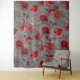 Deep red of poppies on a misty grey background. Poppies watercolor dark floral