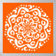 This white mandala sits on a bright, poppy orange background. The colour is bright and creative. Part of the Kylgh Mandala Collection. This design may not print as bright as it appears online.