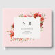 poppy design around rectangle with black text including monogram, names, and wedding date.