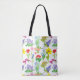 A colourful botanical tote bag with a variety of flowers hand painted with watercolor.
