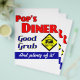 Pop's Diner good grub and plenty of it kitchen saying. A retro restaurant advertising art theme for you or your favourite short order cook. Another original by MomsRetro.
