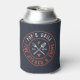 Treat a grill-loving grandpa to this this awesome custom can cooler for Father's Day or Grandparents' Day. A fun addition to his outdoor grilling setup, this cool design for a grillmaster grandfather features a round logo with "Pop's Grill, Steaks and Chops" with illustrations of grilling tools, a flame, and a cow. Finish the design with the year established.