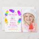 This adorable invitation features colourful watercolor popsicles with faux gold glitter confetti.