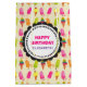 A personalised happy birthday gift bag with an image of a summery pattern with popsicles and ice cream in watercolors. Colourful vibrant colours such as pink and lime green. Happy Birthday and recipients name inside a whimsical circular frame.
