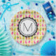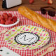 Paper plates with a sweet summertime pattern featuring popsicles and ice cream cones in colourful vibrant watercolors. Write your custom monogram inside a round  frame with a whimsical flower shape.