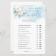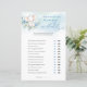 This amazing boho style design for Mummy or Daddy - funny boy Baby Shower game features watercolor hand painted little cute boy baby elephant seating over the eucalyptus wreath as swing decorated dusty blue flowers and combined modern calligraphy script.