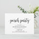 Porch Party, housewarming party invitation card. Planning a housewarming party in celebrating your new home with your family and friends? Invite your guests with this beautiful and perfect Rustic calligraphy themed housewarming party invitation card. Add your details in matching black font / lettering.
