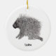 An ink and pencil drawing of a cute porcupine adorns this ornament! Customize by changing the text as you wish!