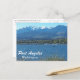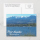Travel postcard featuring a scenic photo image view of the north Olympic Peninsula coastal city of Port Angeles, Washington, along with the snow covered Olympic Mountains. Select from matte or glossy style card.