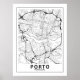 Explore the essence of Porto with this elegant city map poster in classic black and white style, highlighting the intricate streets and roads. A perfect complement to any decoration, no frame.