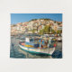 Port with fishing boats in Plomari, Lesvos, Greece Tapestry