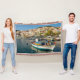 Panorama view of the picturesque port with traditional wooden fishing boats and the village Plomari in evening light, on the Greek island of Lesvos, Aegean Sea, Greece, Europe. Photo taken by Katho Menden, this blanket is a gift for someone who loves Greece and the Greek islands.