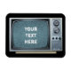 Photograph of a 1980's portable television with static screen. Customizable text and background color. Image copyright 2014 by Margaret E. Cmelik.