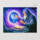 Portal-opening mage in oil painted fantasy holiday postcard