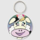 porte clés basique, rond, avec le joli portrait d'une vache quelque peu exentrique mais tellement adorable... illustration originale