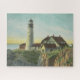 Portland Head Lighthouse watercolor painting shows the iconic Maine lighthouse at sunrise. The artwork is created with watercolor washes over a detailed pencil drawing evoking a timeless image which speaks to how long Portland Head Light has stood watch over the entrance to Casco Bay. It is the first lighthouse commissioned by the newly formed United States. The lightkeeper's house and dramatic Maine coastline are also featured prominently in this enduring New England landscape.